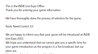 Roots Need Control 3.0 has been selected for INDIE Live Expo 2023!